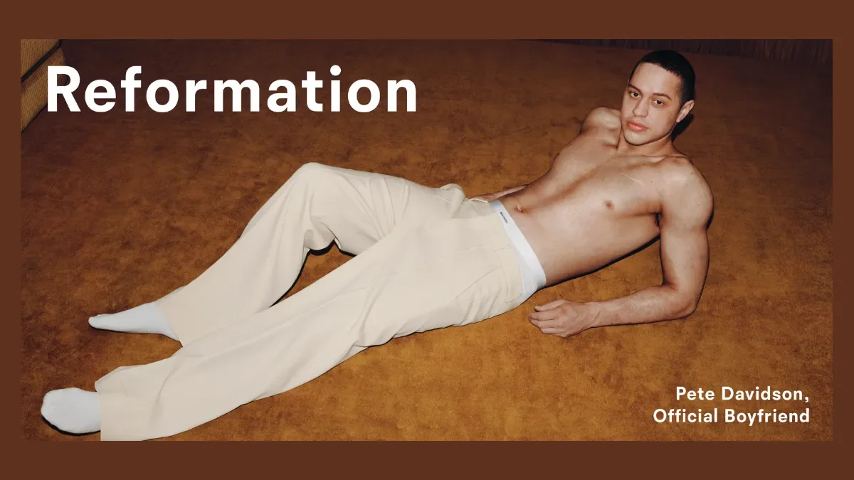 Reformation didn’t foreground the sustainability of their fabrics. Instead they hired Pete Davidson to poke fun at his dating history, choosing cultural cachet over carbon stats.